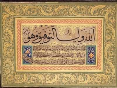 Şeyh Hamdullah Efendi’nin yazmış olduğu kıt’anın ilk satırındaki sülüs hattın güzelliğini seyrediyoruz: “Allahu veliyyü’t-tevfîk ve hüve ni’me’r-refîk: Başarıyı sağlayan Allah’tır, O (c.c.) en ...