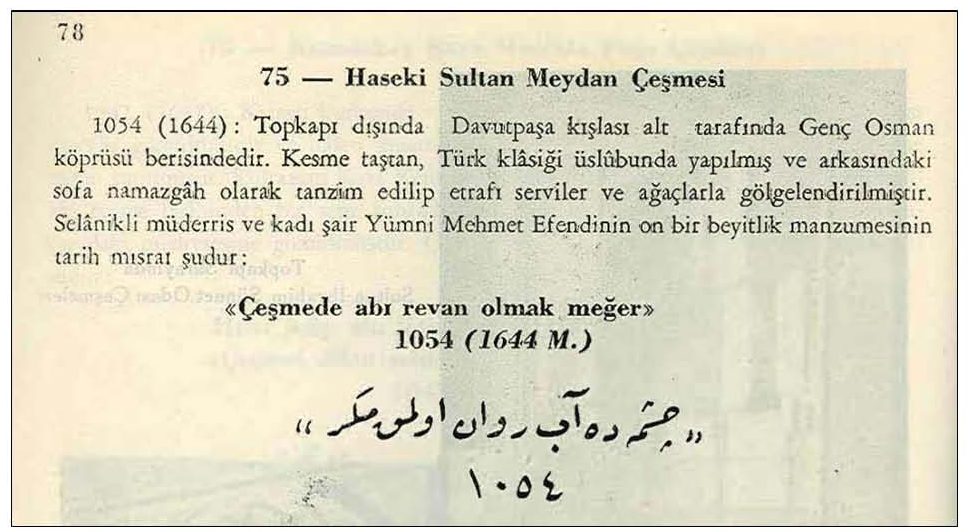 İbrahim Hakkı Tanışık İstanbul Çeşmeleri I isimli eserinin 78. sayfasında bu eser hakkında şöyle diyor: