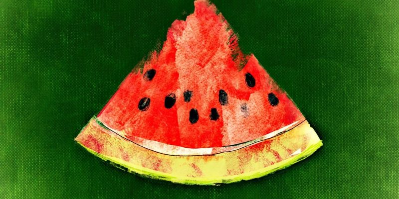 1967 yılındaki Altı Gün Savaşı’ndan sonra Filistin bayrağının kendi topraklarında dalgalanması yasaklandığında sanatçılar ve aktivistler ortak bir bayrak temsili olarak karpuzu tercih etmişler. Siyah çekirdekleri, kırmızı etli kısmı, yeşilden beyaza geçen dış ve iç kabuk renkleri ile bir dilim karpuz devam eden bu yasaklı süreçte Filistin bayrağını dalgalandırmanın ve zulme karşı koymanın yeni bir ifadesi olarak ortaya çıkmış. Tabi bir süre sonra karpuzun evrensel dilde yeni bir birleştirici kuvvet olacağı anlaşıldığında siyasi ve politik açıdan buna da karşı çıkılmaya başlanmış fakat elden ne gelir. Sonuçta karpuz bir meyvedir. Görünüşü bir milletin hürlüğünü, bağımsızlığını ve şerefini temsil eden bayrak ile aynı renkleri taşıyor diye dünyadaki tüm karpuzlarını katledemezsiniz değil mi!