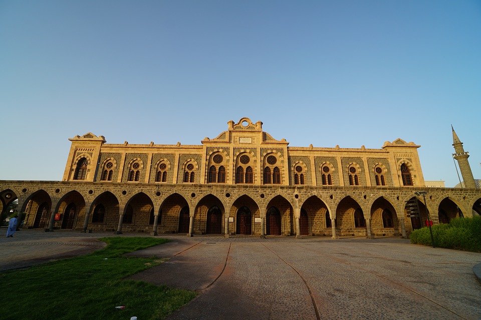 Medine tren istasyonunun günümüzdeki hali. Sultan II. Abdülhamit Han, başından sonuna büyük emek verdiği ve her aşamasıyla bizzat ilgilendiği Hicaz Demiryolunun Medine’ye yakın kısımlarında ise müthiş bir inceliğe imza attı. Mukaddes topraklarda gürültülü çalışılması sebebiyle Hazreti Peygamber’in (s.a.s.) ruhaniyeti, Ehl-i Beyt’in ve burada yatanların ruhları rahatsız olmasın diye ray altına keçe döşetmişti.